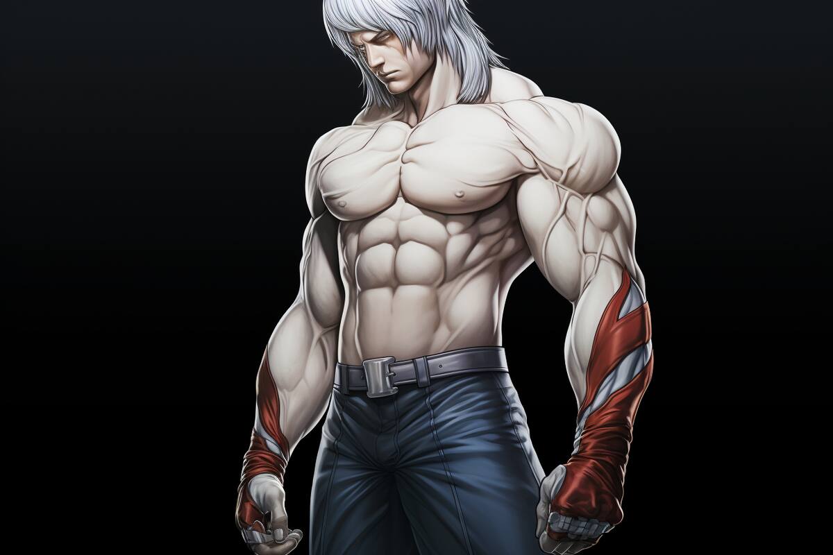 En las imágenes proporcionadas, podemos apreciar cómo Orochi, considerado uno de los luchadores más poderosos en el universo de TKOF, exhibe su imponente físico.