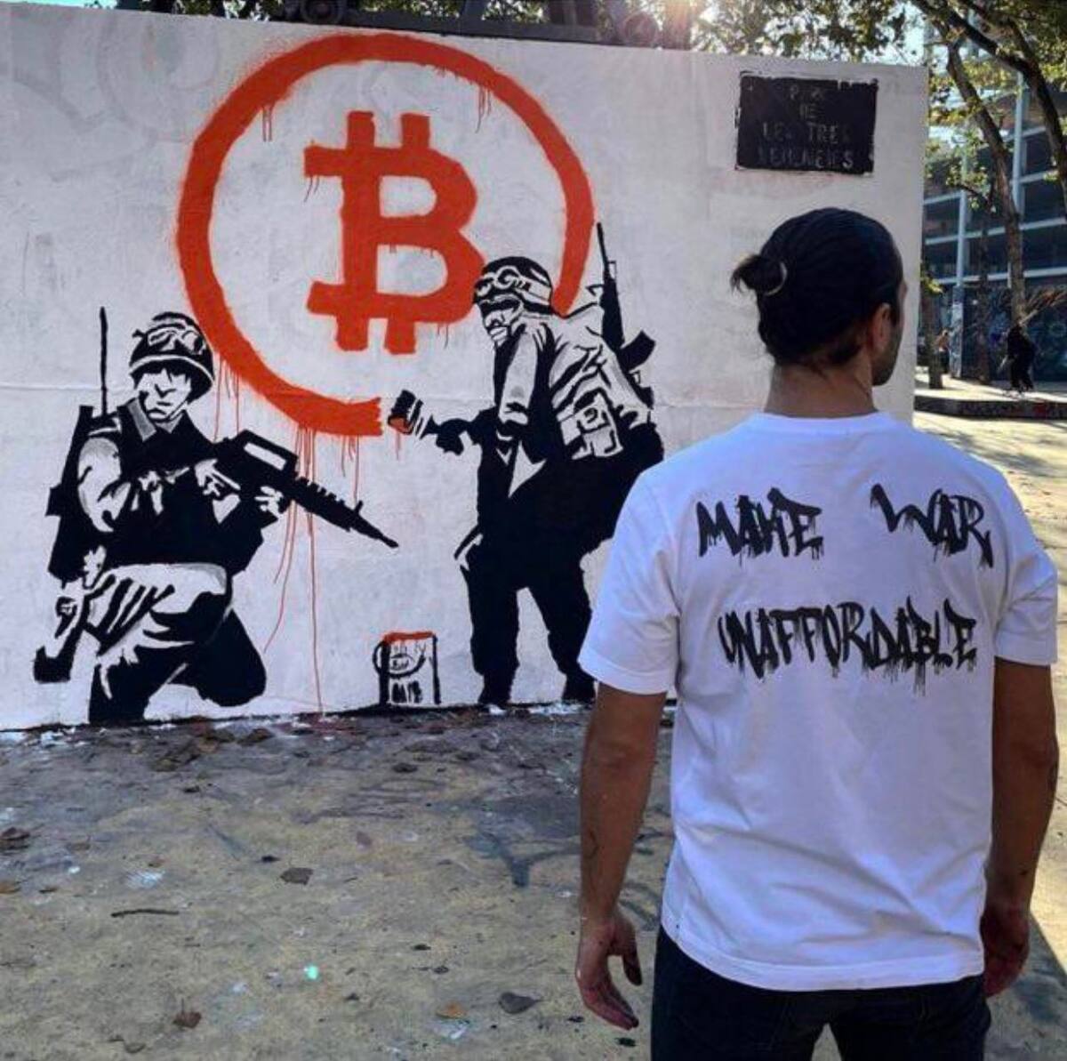 La inflación destruye la vida de millones de personas y al elegir bitcoin demostramos que queremos promover un cambio”, señala el artista callejero.