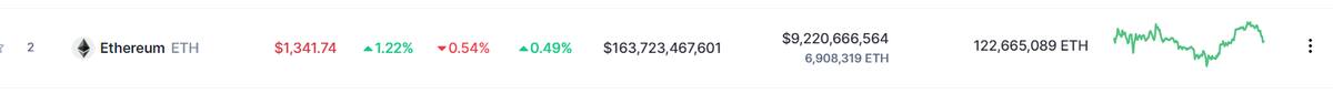 Ethereum, por su parte, manifestó en las últimas 24 horas, un incremento del 0,24% del 3,23%, llegando a un precio de $1,336 dólares por cada unidad, equivalentes a 26,947 pesos mexicanos; pero, semanalmente, manifiesta un retroceso del 3,66%