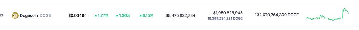 Finalmente, un top 5 de criptomonedas no está listo si no se cuenta con la criptomoneda-meme Dogecoin (DOGE), la criptomoneda-meme experimentó un incremento del 0,59% estableciéndose en 0,061 dólares por cada unidad. Sin embargo, semanalmente, experimento incremento del 2,95%.