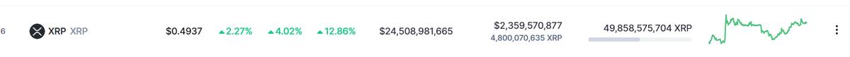 La criptomoneda XRP, por su parte, en las últimas 24 horas, ha manifestado una caída del 6,96%, estableciéndose en los 0,43 dólares por unidad, pero semanalmente manifestó un incremento del 10,37%.