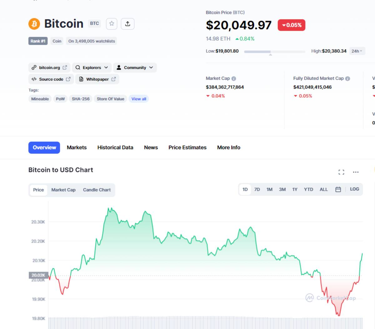 Por su parte, en CoinMarketCap, el precio de Bitcoin experimentó un incremento del 0,05% llegando hasta los $20,086 dólares por unidad, equivalentes a 401,142 pesos mexicanos.