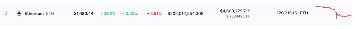 Ethereum, por su parte, manifestó en las últimas 24 horas, un ligero incremento del 0,30% llegando a un precio de $1,679 dólares por cada unidad, equivalentes a 28,603 pesos mexicanos; pero, semanalmente, manifiesta una ca[ida del 7,87%.