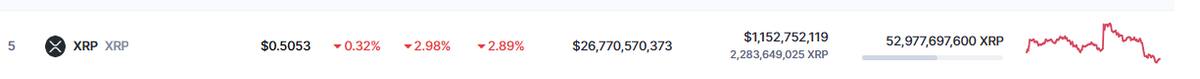 La criptomoneda XRP, por su parte, en las últimas 24 horas, ha manifestado una caída del 2,89% estableciéndose en los 0,51 dólares por unidad, pero semanalmente manifestó una caída del 2,84%