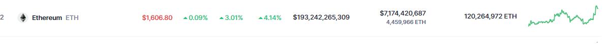 Ethereum, por su parte, manifestó en las últimas 24 horas, un ligero incremento del 2,68% llegando a un precio de $1,590 dólares por cada unidad, equivalentes a 28,603 pesos mexicanos; pero, semanalmente, manifiesta una caída del 7,36%