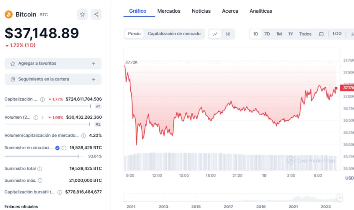 Por su parte, en CoinMarketCap, el precio de Bitcoin una caída del 1,55% llegando hasta los $27,654 dólares por unidad, equivalentes a 496,504 pesos mexicanos.