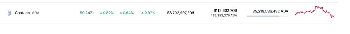 El precio de Cardano (ADA), por su parte, manifestó en las últimas 24 horas, un incremento del 2,78%, por lo que llegó a un valor de $0.254 dólares; sin embargo, en los últimos 7 días, manifestó una caída del 7,66%.