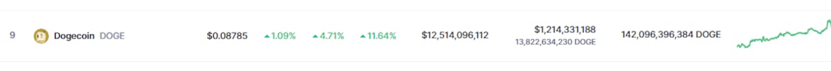 Finalmente, un top 5 de criptomonedas no está listo si no se cuenta con la criptomoneda-meme Dogecoin (DOGE), la criptomoneda-meme experimentó una caída del 0,48% estableciéndose en 0,09 dólares por cada unidad. Sin embargo, semanalmente, experimentó una caída del 2,89%.