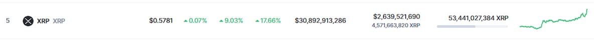 La criptomoneda XRP, por su parte, en las últimas 24 horas, ha manifestado una caída del 2,89% estableciéndose en los 0,51 dólares por unidad, pero semanalmente manifestó una caída del 8,29%.