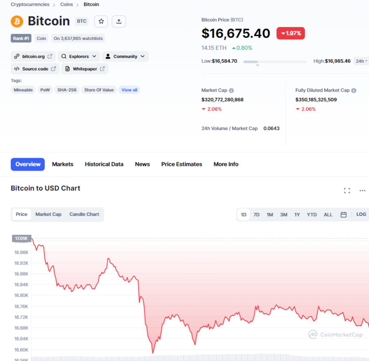 Por su parte, en CoinMarketCap, el precio de Bitcoin experimentó un incremento del 1,97% llegando hasta los $16,675 dólares por unidad, equivalentes a 314,961 pesos mexicanos.