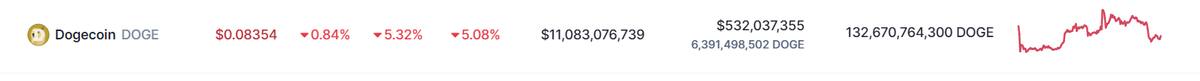 Finalmente, un top 5 de criptomonedas no está listo si no se cuenta con la criptomoneda-meme Dogecoin (DOGE), la criptomoneda-meme experimentó una caída del 0,42% estableciéndose en 0,09 dólares por cada unidad. Sin embargo, semanalmente, experimentó una caída del 5,08%.
