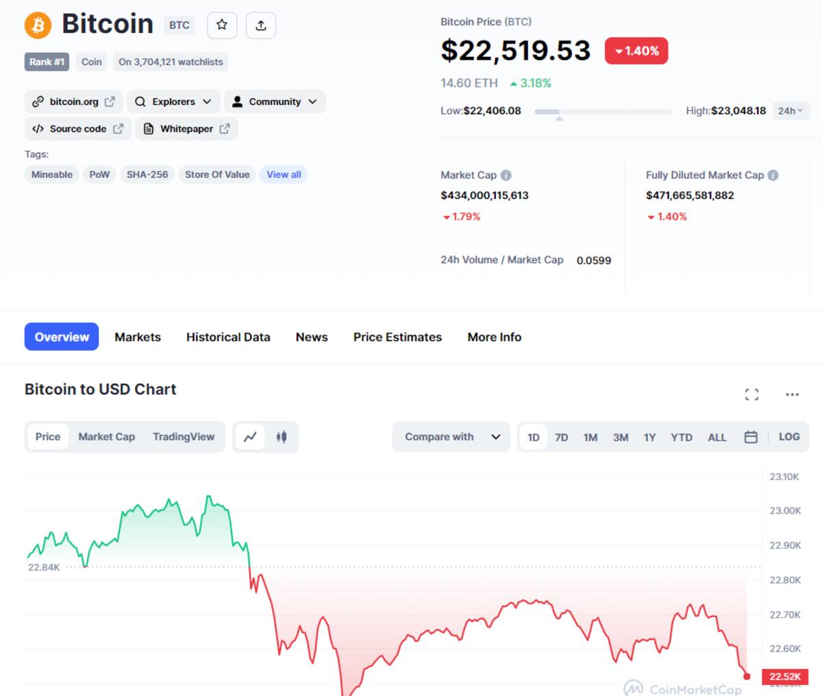 Por su parte, en CoinMarketCap, el precio de Bitcoin experimentó un incremento de 0,16% llegando hasta los $22,833 dólares por unidad, equivalentes a 390,580 pesos mexicanos.