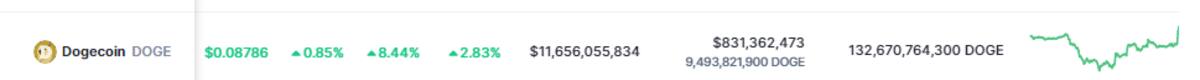 Finalmente, un top 5 de criptomonedas no está listo si no se cuenta con la criptomoneda-meme Dogecoin (DOGE), la criptomoneda-meme experimentó un incremento del 8,41%, estableciéndose en 0,087 dólares por cada unidad. Sin embargo, semanalmente, experimentó una caída del 2,68%.