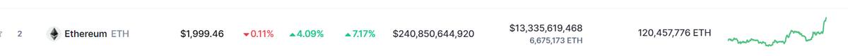 Ethereum, por su parte, manifestó en las últimas 24 horas, un ligero incremento del 4,23% llegando a un precio de $1999 dólares por cada unidad, equivalentes a 22 ,618 pesos mexicanos; pero, semanalmente, manifiesta un incremento del 2,42%