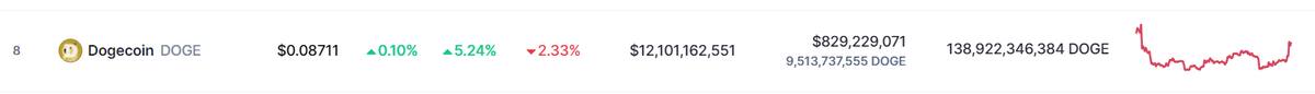 Finalmente, un top 5 de criptomonedas no está listo si no se cuenta con la criptomoneda-meme Dogecoin (DOGE), la criptomoneda-meme experimentó un incremento del 10,17% estableciéndose en 0,09 dólares por cada unidad. Sin embargo, semanalmente, experimentó una caída del 2,07%.