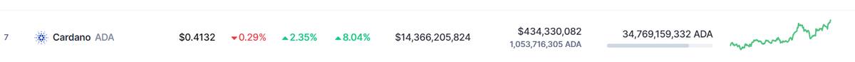 El precio de Cardano (ADA), por su parte, manifestó en las últimas 24 horas, un incremento del 13,50%, por lo que llegó a un valor de $0.334 dólares; sin embargo, en los últimos 7 días, manifestó un incremento del 2,54%