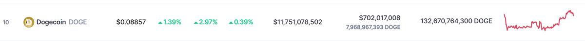 El precio de Dogecoin (DOGE)