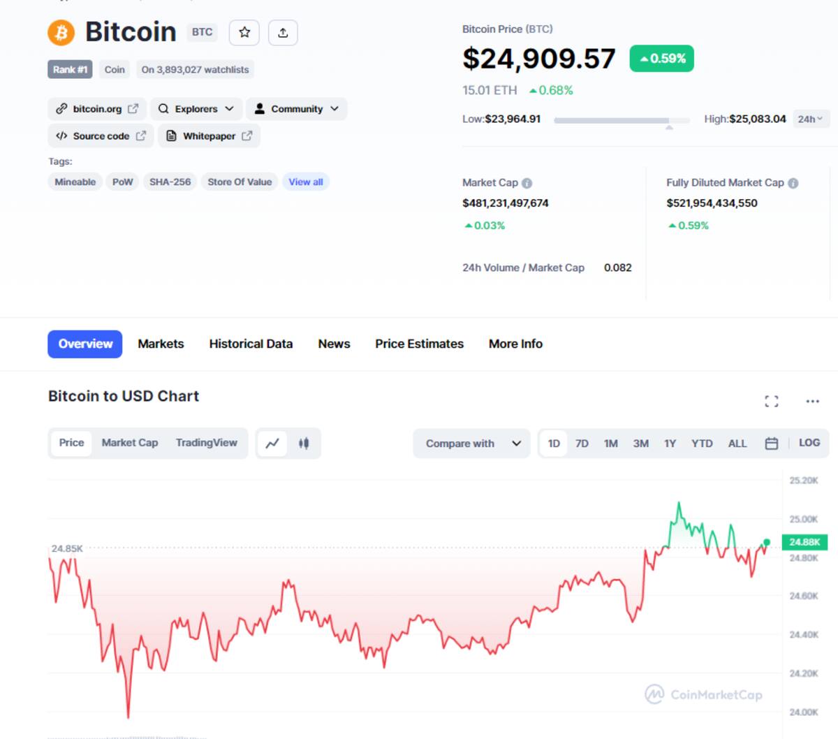 Por su parte, en CoinMarketCap, el precio de Bitcoin un incremento del 0,52 llegando hasta los $24,895 dólares por unidad, equivalentes a 404,538 pesos mexicanos.