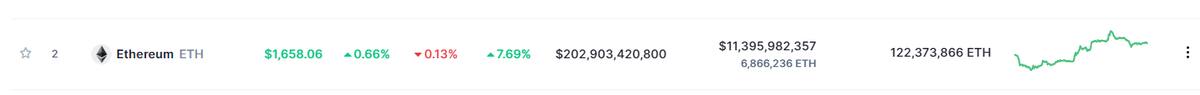 Ethereum, por su parte, manifestó en las últimas 24 horas, un ligero retroceso del 7,62% llegando a un precio de $1,658 dólares por cada unidad, equivalentes a 22 ,618 pesos mexicanos; pero, semanalmente, manifiesta un incremento del 7,56%.