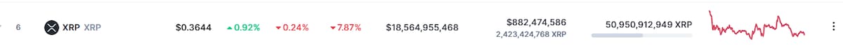 La criptomoneda XRP, por su parte, en las últimas 24 horas, ha manifestado un incremento del 3,78% estableciéndose en los 0,34 dólares por unidad, pero semanalmente manifestó una caída del 8,04%.