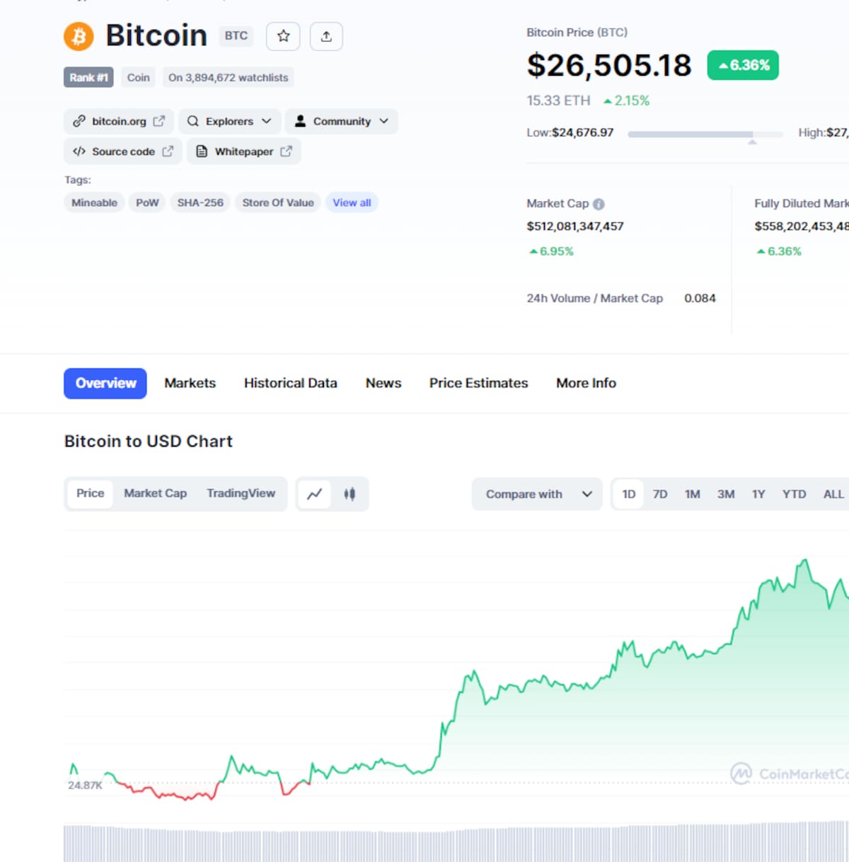 Por su parte, en CoinMarketCap, el precio de Bitcoin un incremento del 6,22% llegando hasta los $24,895 dólares por unidad, equivalentes a 404,538 pesos mexicanos.