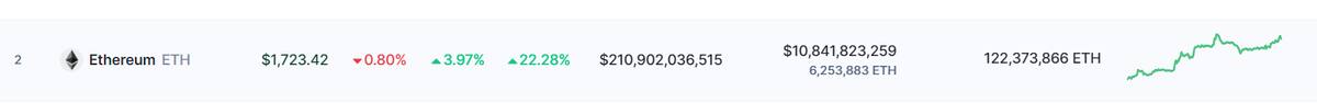 Ethereum, por su parte, manifestó en las últimas 24 horas, un ligero incremento del 4,23% llegando a un precio de $1,658 dólares por cada unidad, equivalentes a 22 ,618 pesos mexicanos; pero, semanalmente, manifiesta un incremento del 22,77%.
