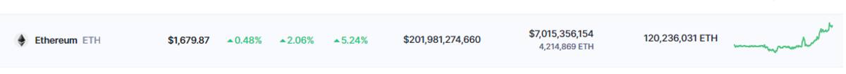 Ethereum, por su parte, manifestó en las últimas 24 horas, un ligero incremento del 2,08% llegando a un precio de $1,680 dólares por cada unidad, equivalentes a 28,603 pesos mexicanos; pero, semanalmente, manifiesta un incremento del 5,24%