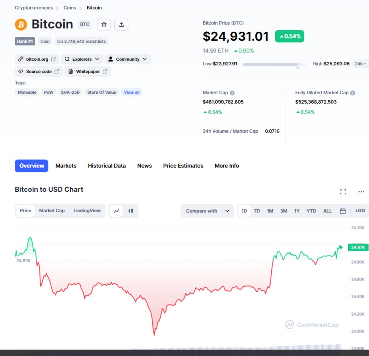 Por su parte, en CoinMarketCap, el precio de Bitcoin experimentó una caída del 4,25% llegando hasta los $24,706 dólares por unidad, equivalentes a 390,580 pesos mexicanos.