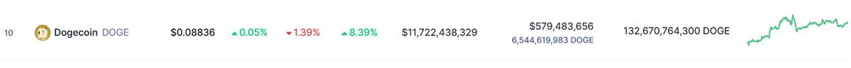 Finalmente, un top 5 de criptomonedas no está listo si no se cuenta con la criptomoneda-meme Dogecoin (DOGE), la criptomoneda-meme experimentó una caída del 0,42% estableciéndose en 0,09 dólares por cada unidad. Sin embargo, semanalmente, experimentó un incremento del 7.78%.