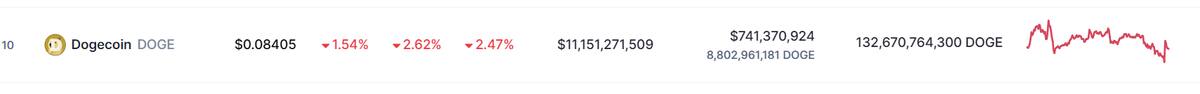 Finalmente, un top 5 de criptomonedas no está listo si no se cuenta con la criptomoneda-meme Dogecoin (DOGE), la criptomoneda-meme experimentó una caída del 0,42% estableciéndose en 0,09 dólares por cada unidad. Sin embargo, semanalmente, experimentó un incremento del 7.78%.