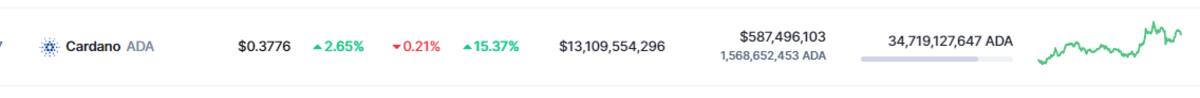 El precio de Cardano (ADA), por su parte, manifestó en las últimas 24 horas, un incremento del 13,50%, por lo que llegó a un valor de $0.334 dólares; sin embargo, en los últimos 7 días, manifestó un incremento del 2,54%