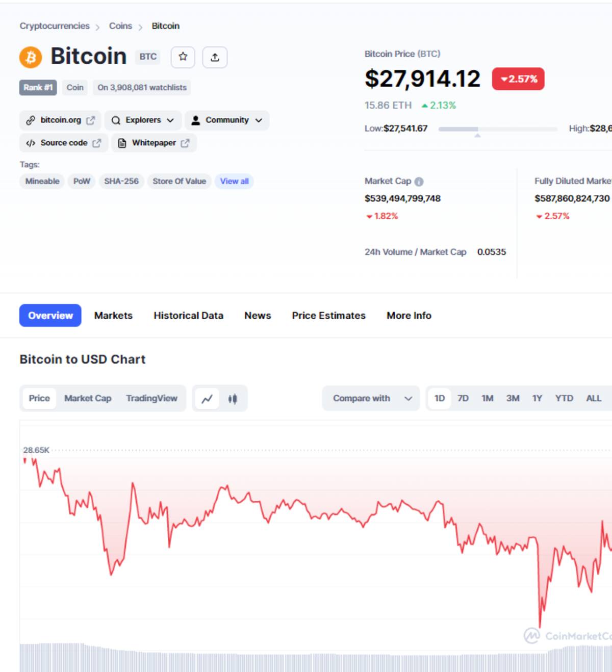 Por su parte, en CoinMarketCap, el precio de Bitcoin un incremento del 1,27% llegando hasta los $28,594 dólares por unidad, equivalentes a 523,482 pesos mexicanos.