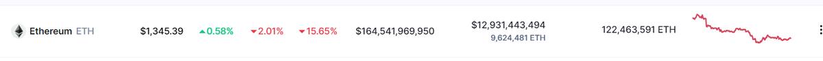 Ethereum, por su parte, manifestó en las últimas 24 horas, una caída del 3,23%, llegando a un precio de $1,444 dólares por cada unidad, equivalentes a 28,964 pesos mexicanos; pero, semanalmente, manifiesta un retroceso del 15,85%