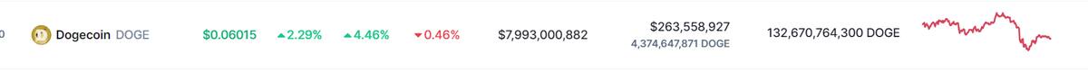 Finalmente, un top 5 de criptomonedas no está listo si no se cuenta con la criptomoneda-meme Dogecoin (DOGE), la criptomoneda-meme experimentó una caída del 0,59% estableciéndose en 0,062 dólares por cada unidad. Sin embargo, semanalmente, experimenta una caída del 3,33%.