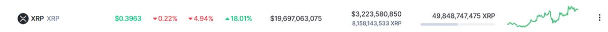 La criptomoneda XRP, por su parte, en las últimas 24 horas, ha manifestado una caída del 3,87%, estableciéndose en los 0,34 dólares por unidad, pero semanalmente manifestó un incremento del 1,95%.