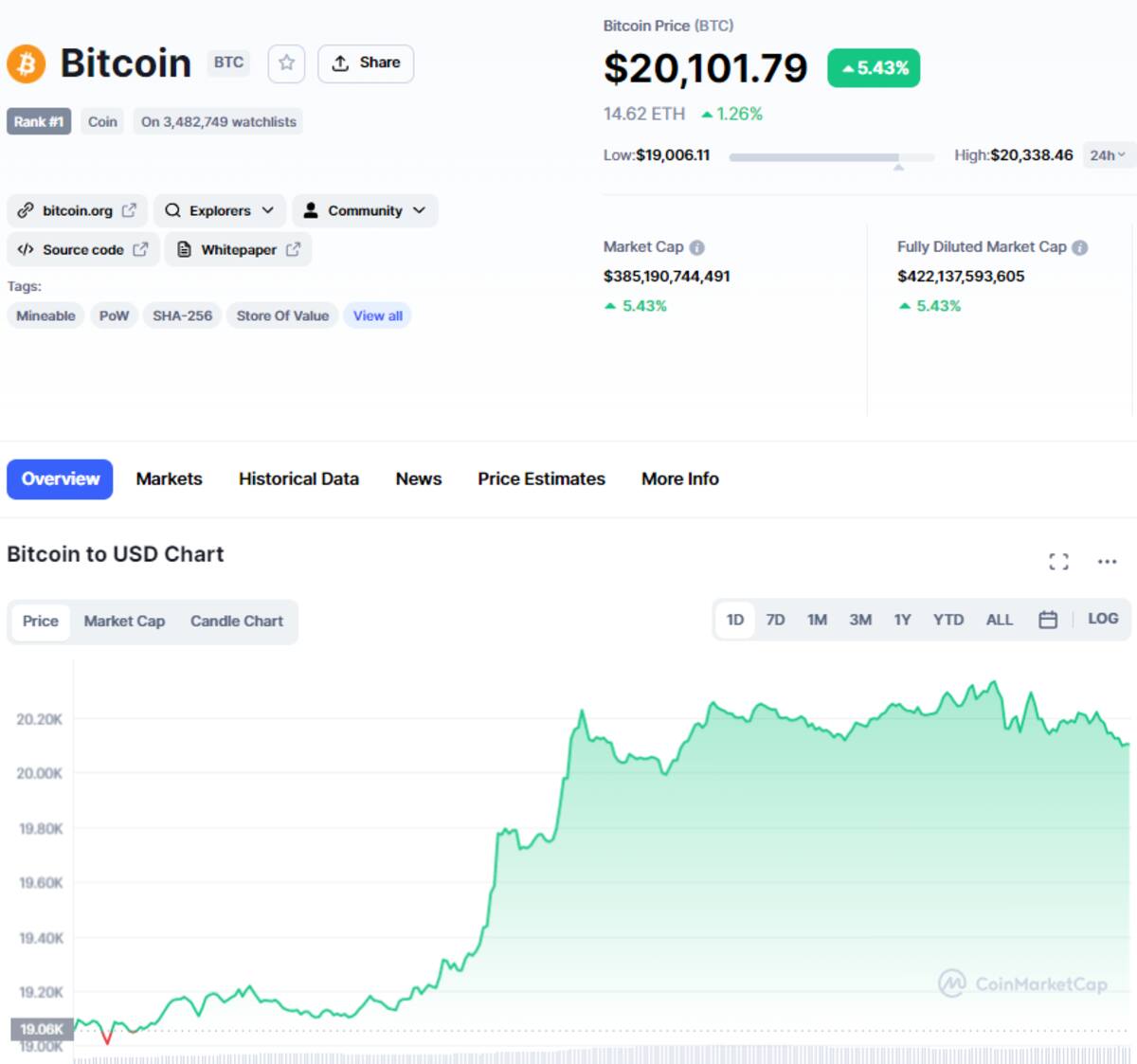 Por su parte, en CoinMarketCap, el precio de Bitcoin experimentó un incremento del 5,57% llegando hasta los $20,119 dólares por unidad, equivalentes a 407,887 pesos mexicanos.