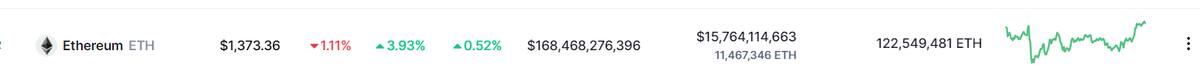 Ethereum, por su parte, manifestó en las últimas 24 horas, una caída del 3,23%, llegando a un precio de $1,373 dólares por cada unidad, equivalentes a 27,896 pesos mexicanos; pero, semanalmente, manifiesta un retroceso del 15,85%