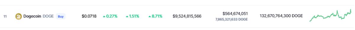 El precio de Dogecoin (DOGE)