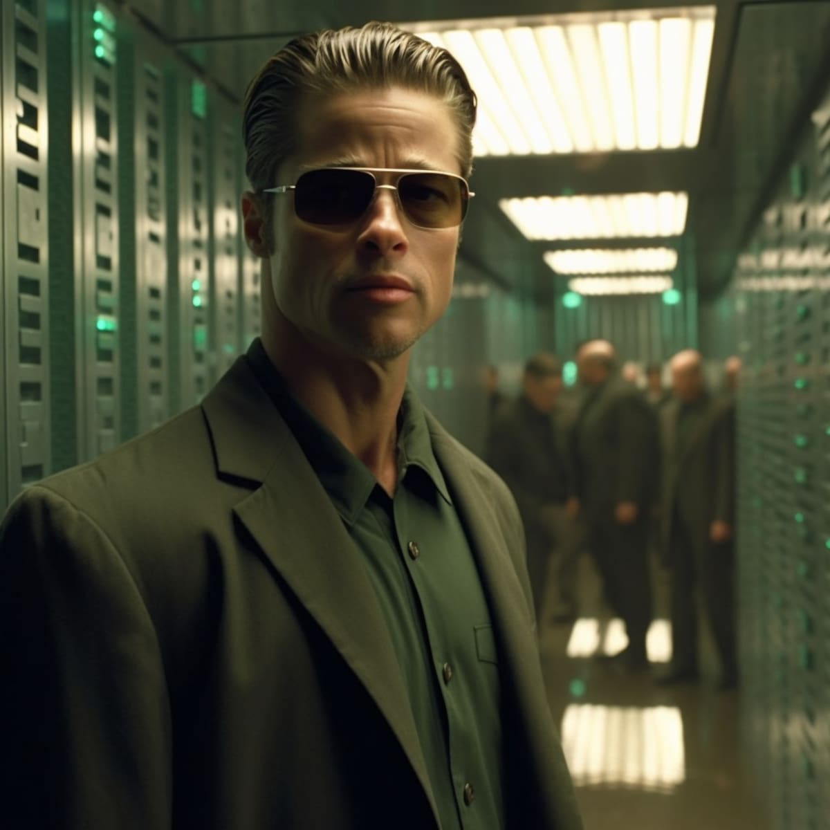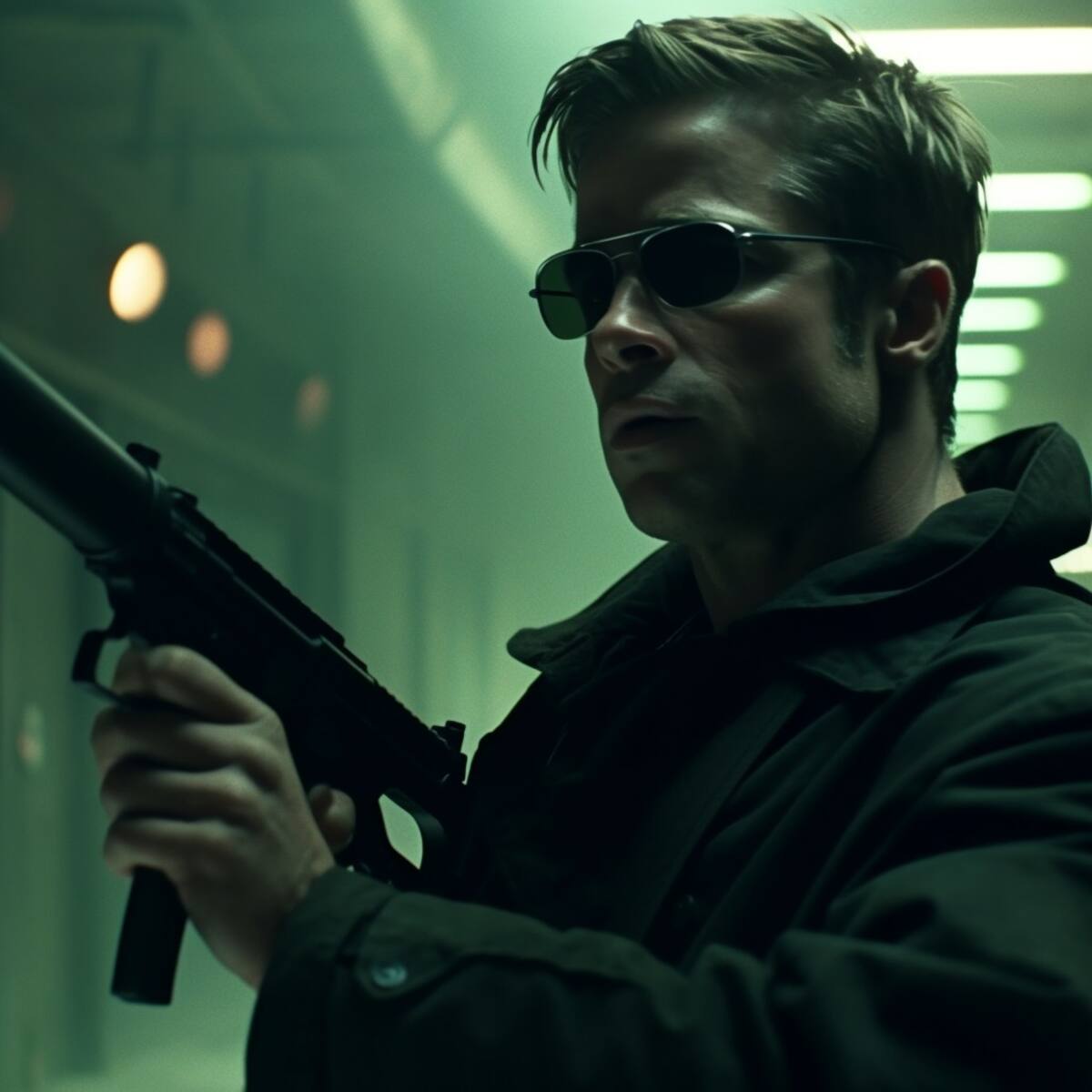 Las imágenes fueron creadas por Kendra Club y compartida en Ai Art Galaxy, en estas ilustraciones, se observa bien cómo Bratt Pitt asume el papel de Neo en Matrix y combate contra los villanos. Además de esto, el personaje tiene su característico atuendo y la paleta de colores es similar.