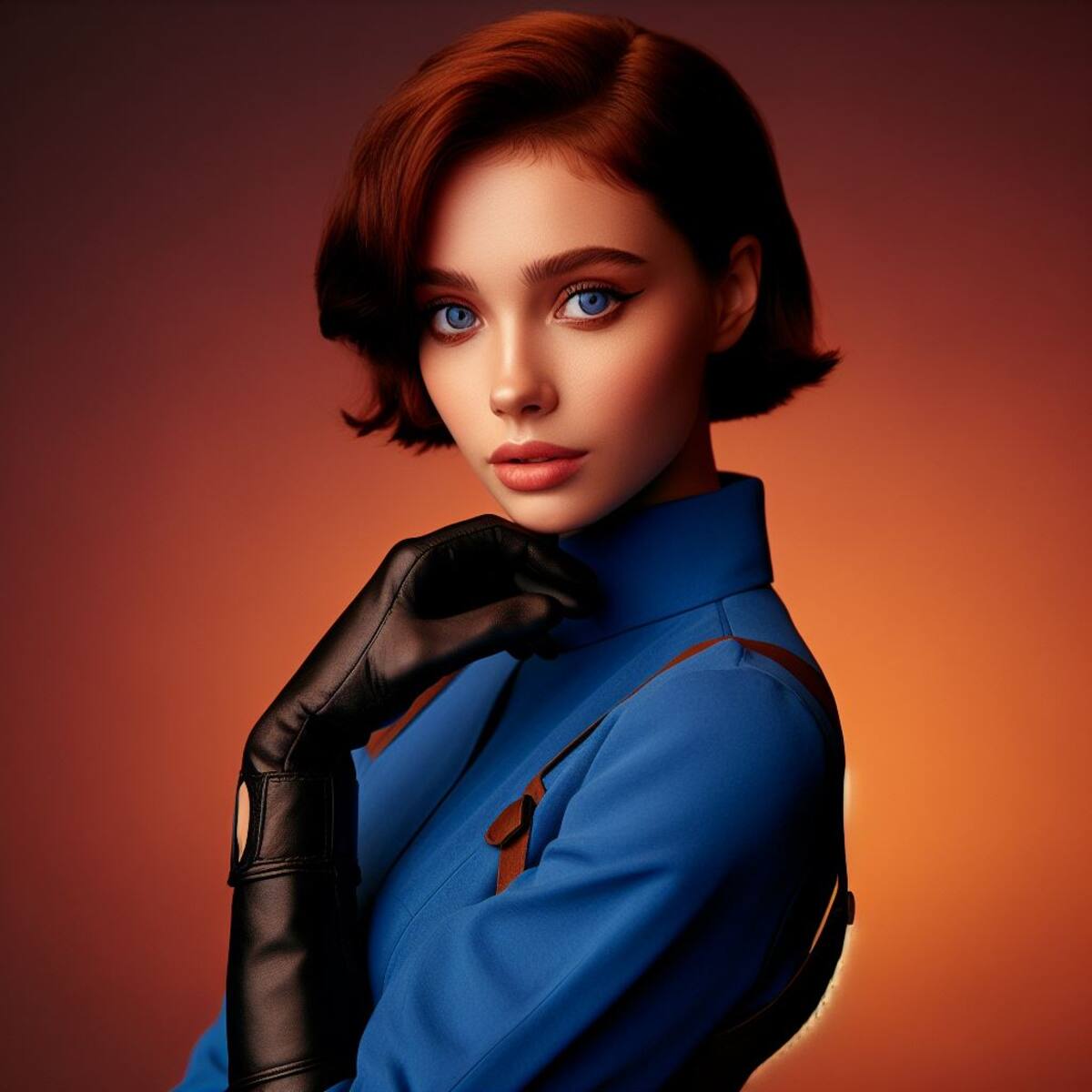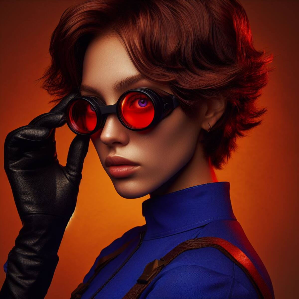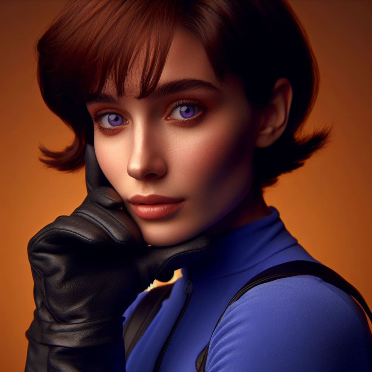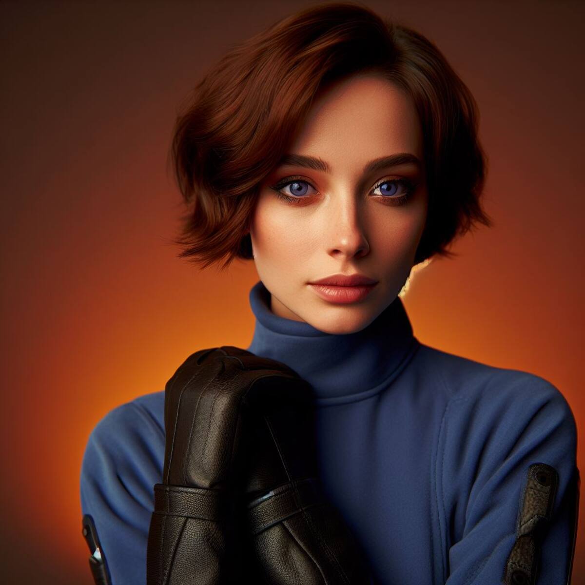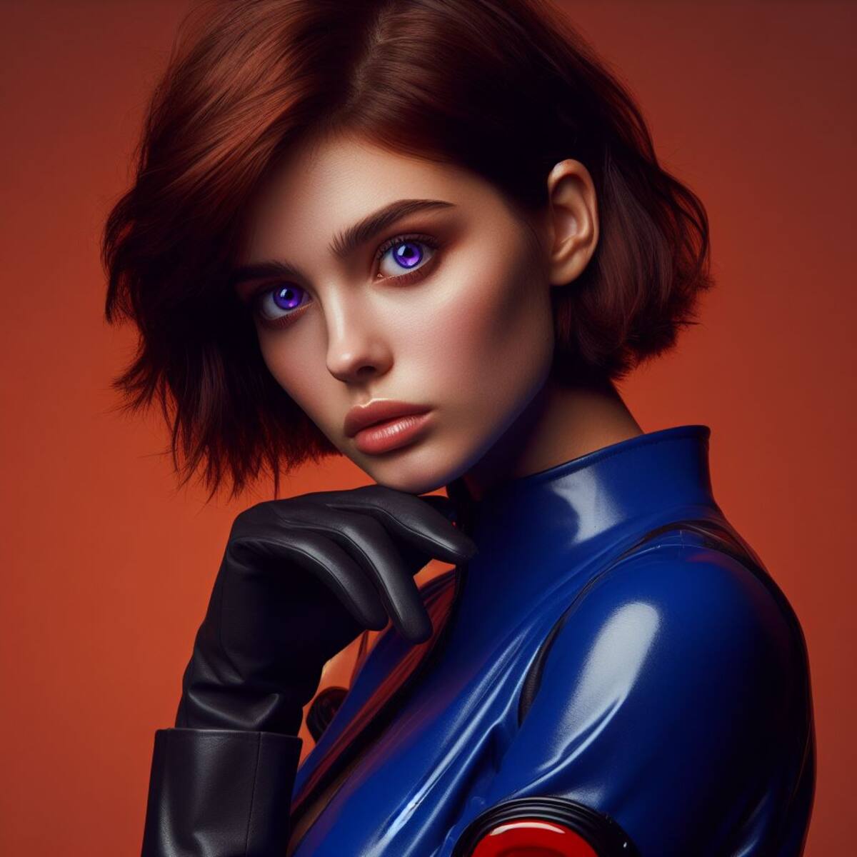 Los retratos híperrealistas creados con Bing capturan muy bien los rasgos distintivos de Maddie, como su cabello rojo, sus inusuales ojos púrpuras y su traje azul. También le da una expresión de determinación y curiosidad, acorde con su personalidad.
