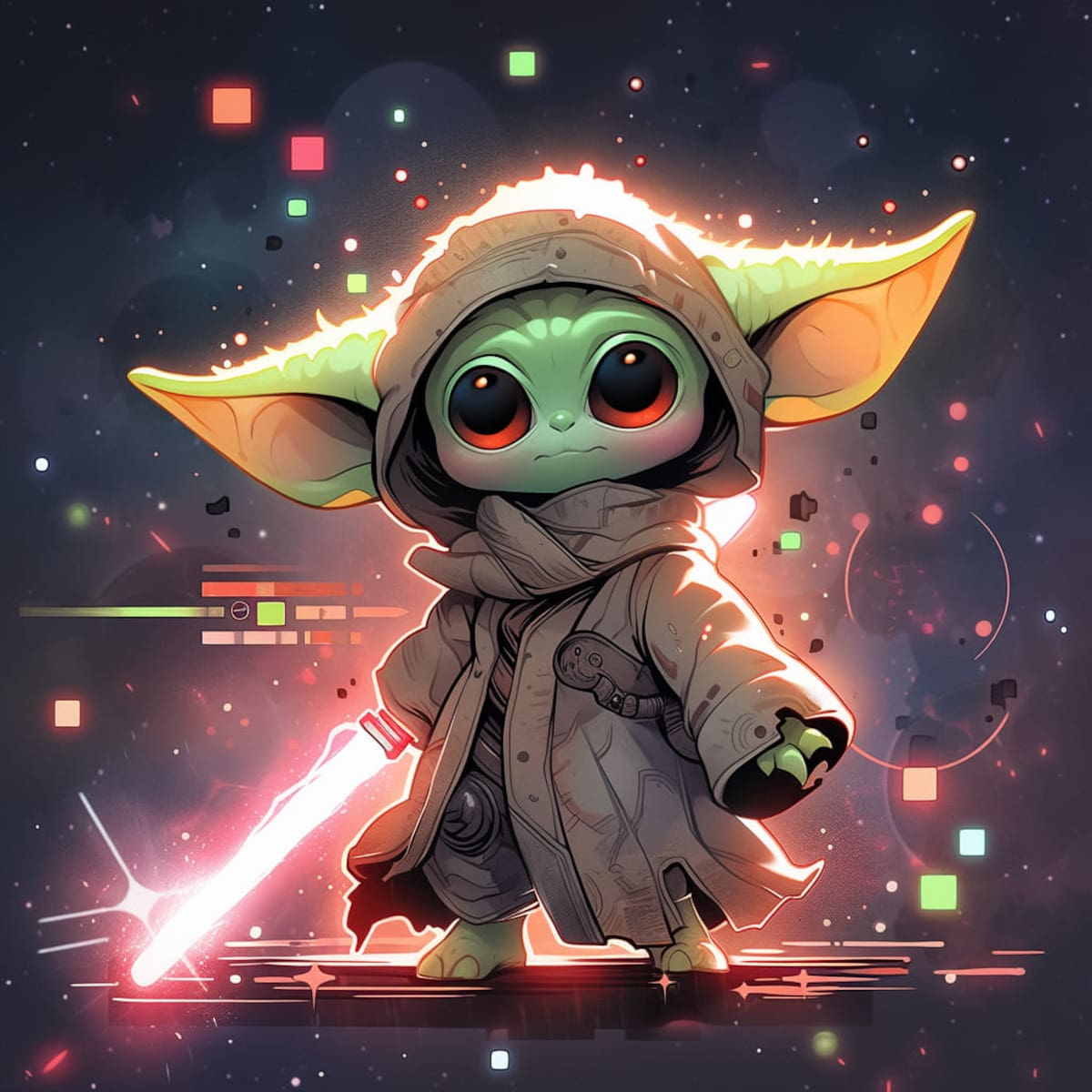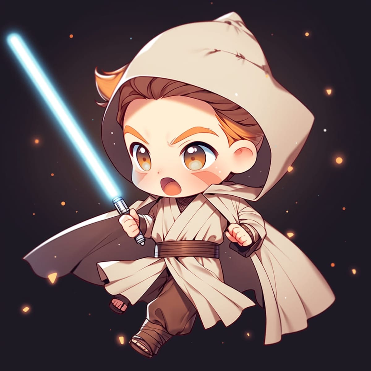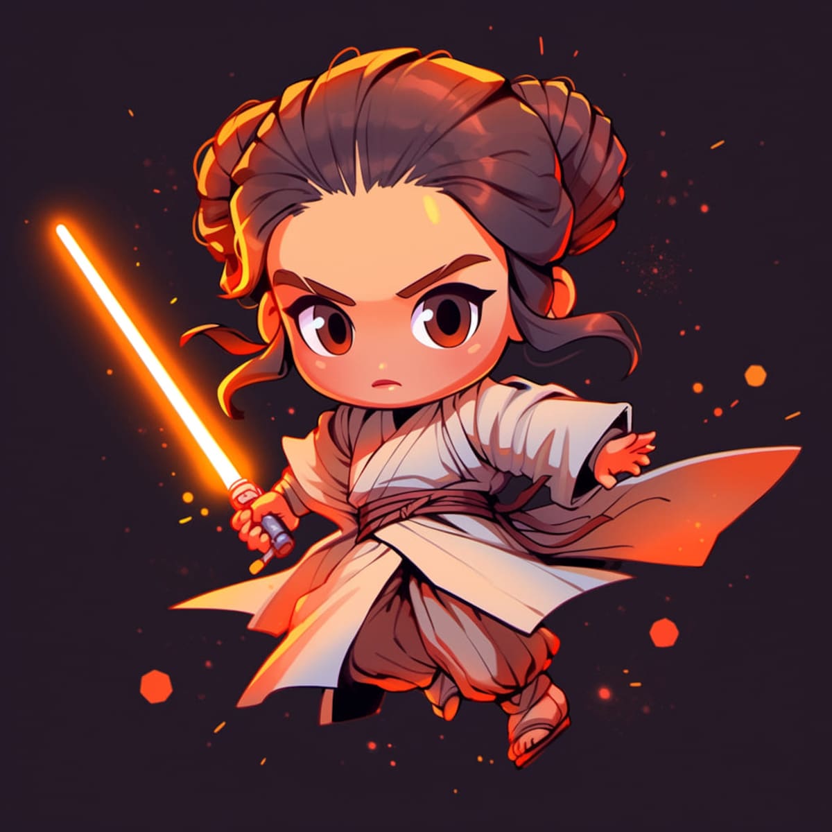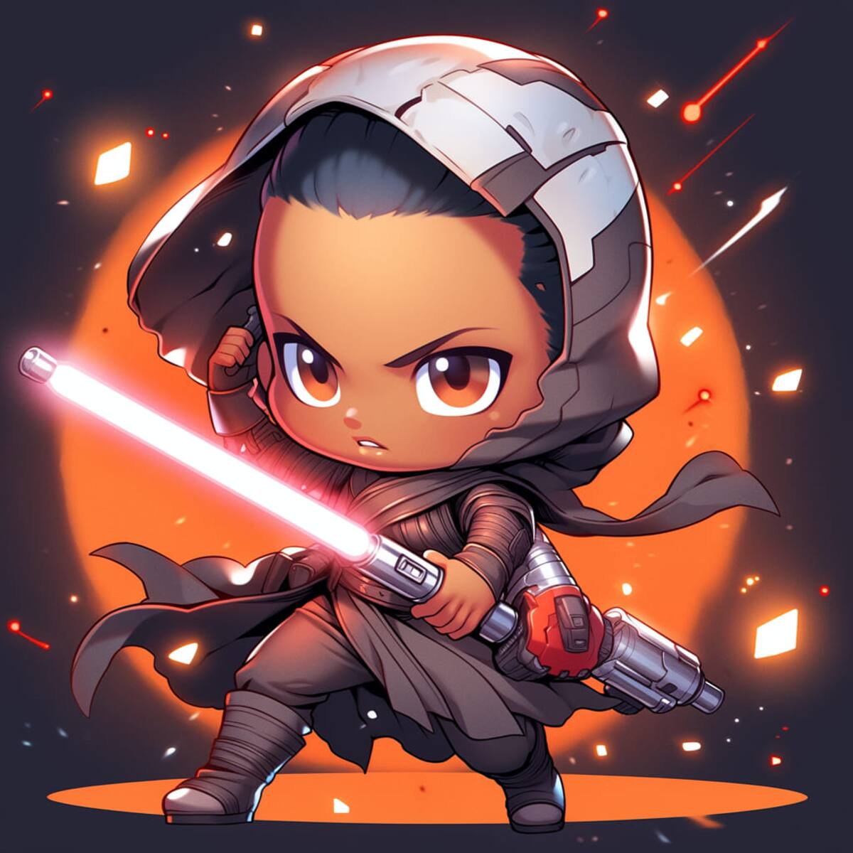El resultado es sorprendente y divertido. Podemos ver a Luke Skywalker con su sable láser verde, a Darth Vader con su casco negro y su capa, a Yoda con sus orejas puntiagudas y su túnica marrón, o a Leia Organa con su característico peinado de moños laterales. Todos ellos tienen unos ojos enormes y una boca pequeña, típicos del estilo chibi. Además, las imágenes tienen un aspecto realista y detallado, gracias al poder de la IA.