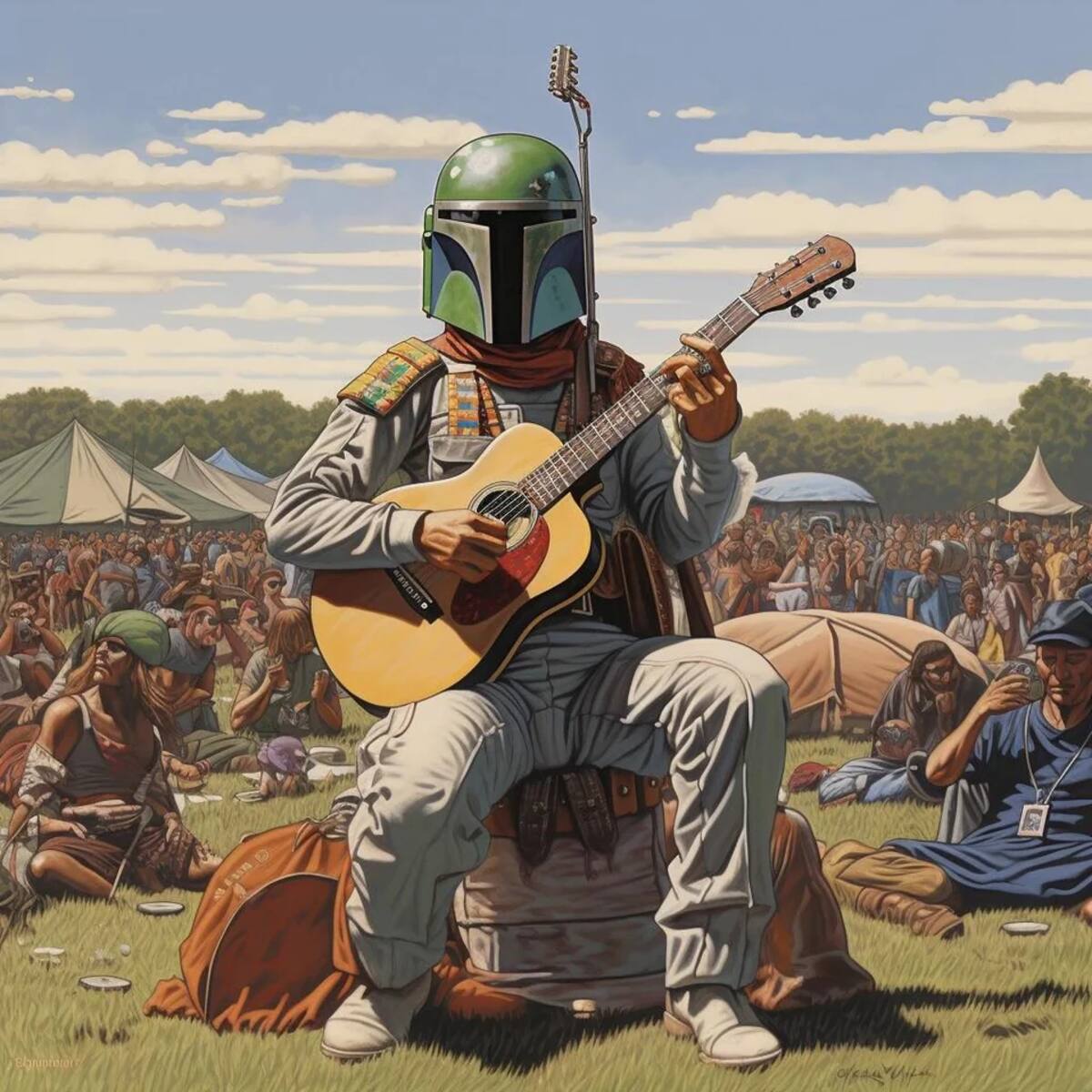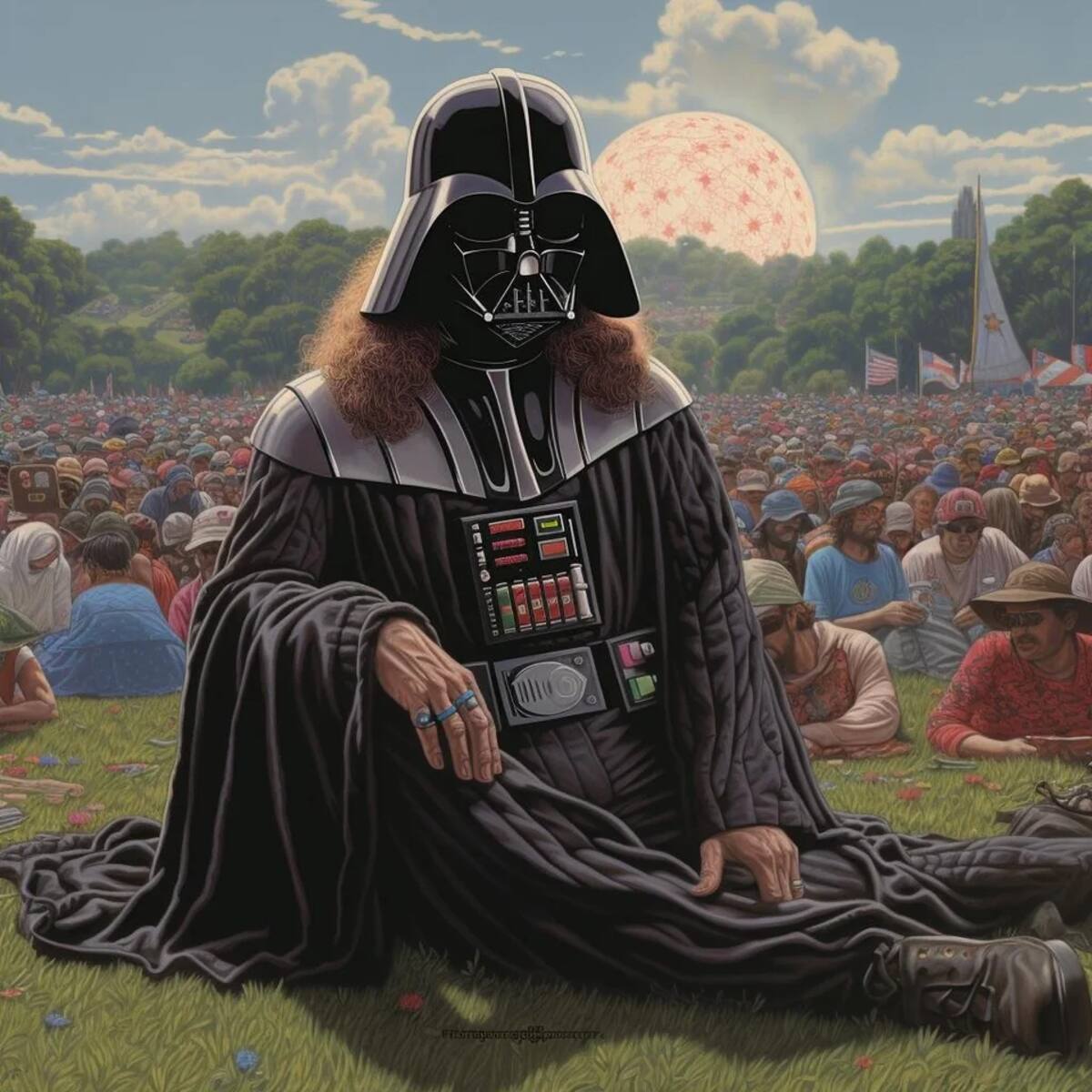 ¿Te imaginas cómo se verían Luke Skywalker, Darth Vader, Yoda y otros personajes de Star Wars si hubieran asistido al legendario festival de Woodstock en 1969? Esta combinación tan alocada ha sido posible gracias al uso de la inteligencia artificial Midjourney, con la que alguien en Reddit ha creado unas impresionantes imágenes que recrean ese escenario.