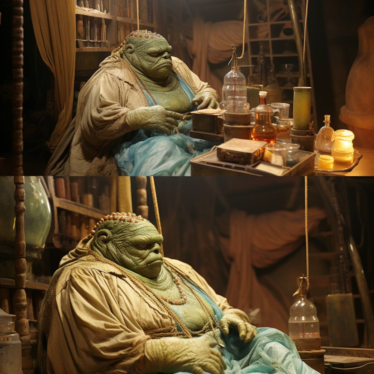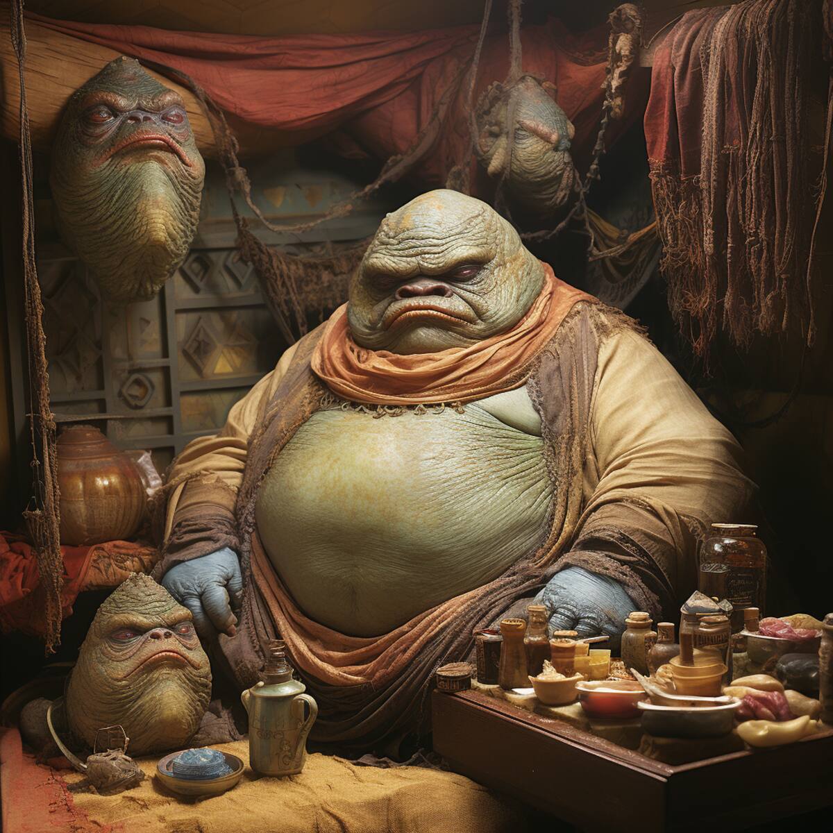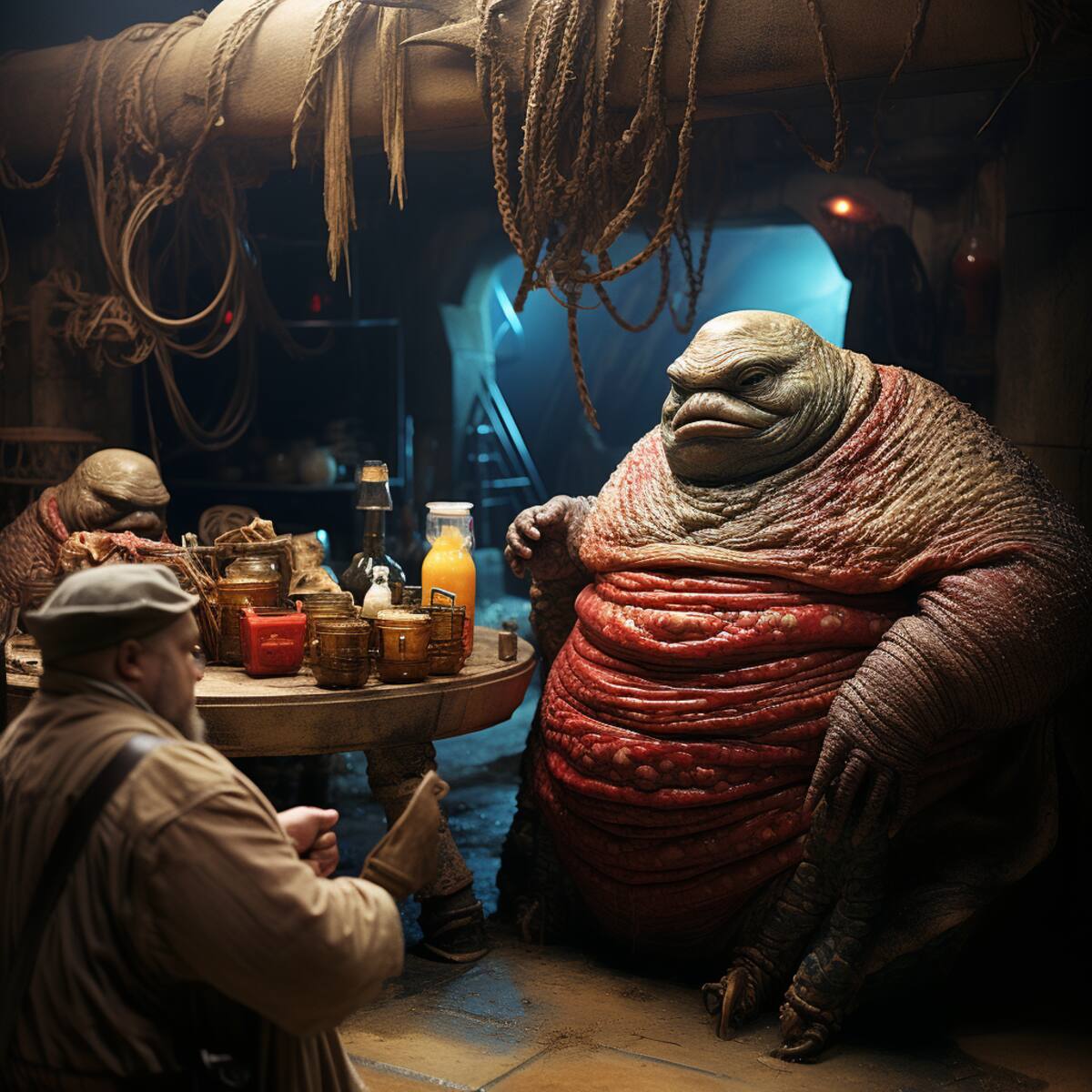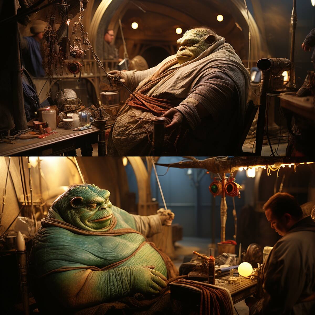 Decidimos resolver nuestras dudas con Midjourney, el célebre bot generador de imágenes con el que miles experimentan a diario para plasmar sus visiones e ideas, o simplemente. Así es como se vería una película de Star Wars sobre Jabba the Hutt si Guillermo del Toro la hubiese filmado: