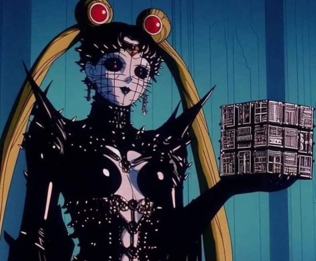 A través de redes sociales, circulan imágenes del personaje de Sailor Moon fusionado con Pinhead, el cenobita líder del universo de “Hellraiser”, calificado por unos como “‘angel” o “demonio”. En la ilustración, que son cuatro imágenes, se observa a Sailor con los característicos clavos de Pinhead y el cubo de los lamentos; además de las grandes cadenas alrededor del personaje.