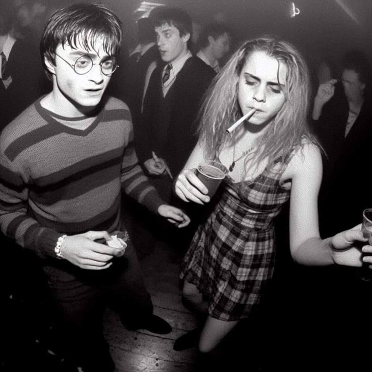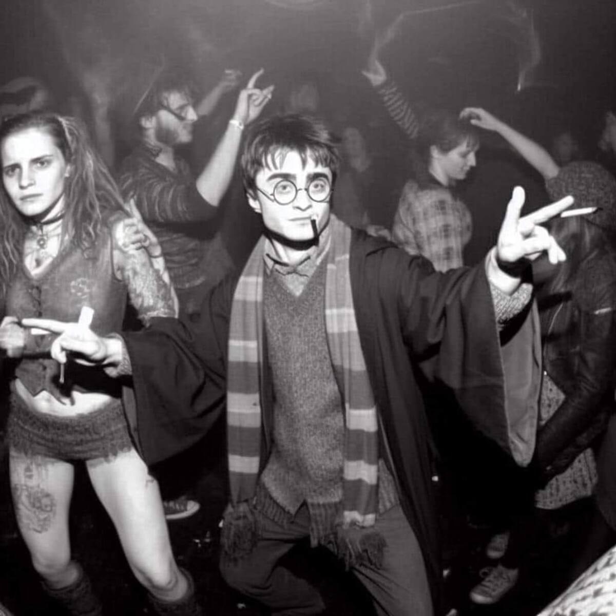 La publicación fue sumamente viral debido a que muestra los grandes personajes de J.K Rowling en un contexto sumamente distinto: bailando en un rave, pero no solo eso, sino que se meten sustancias al cuerpo.
