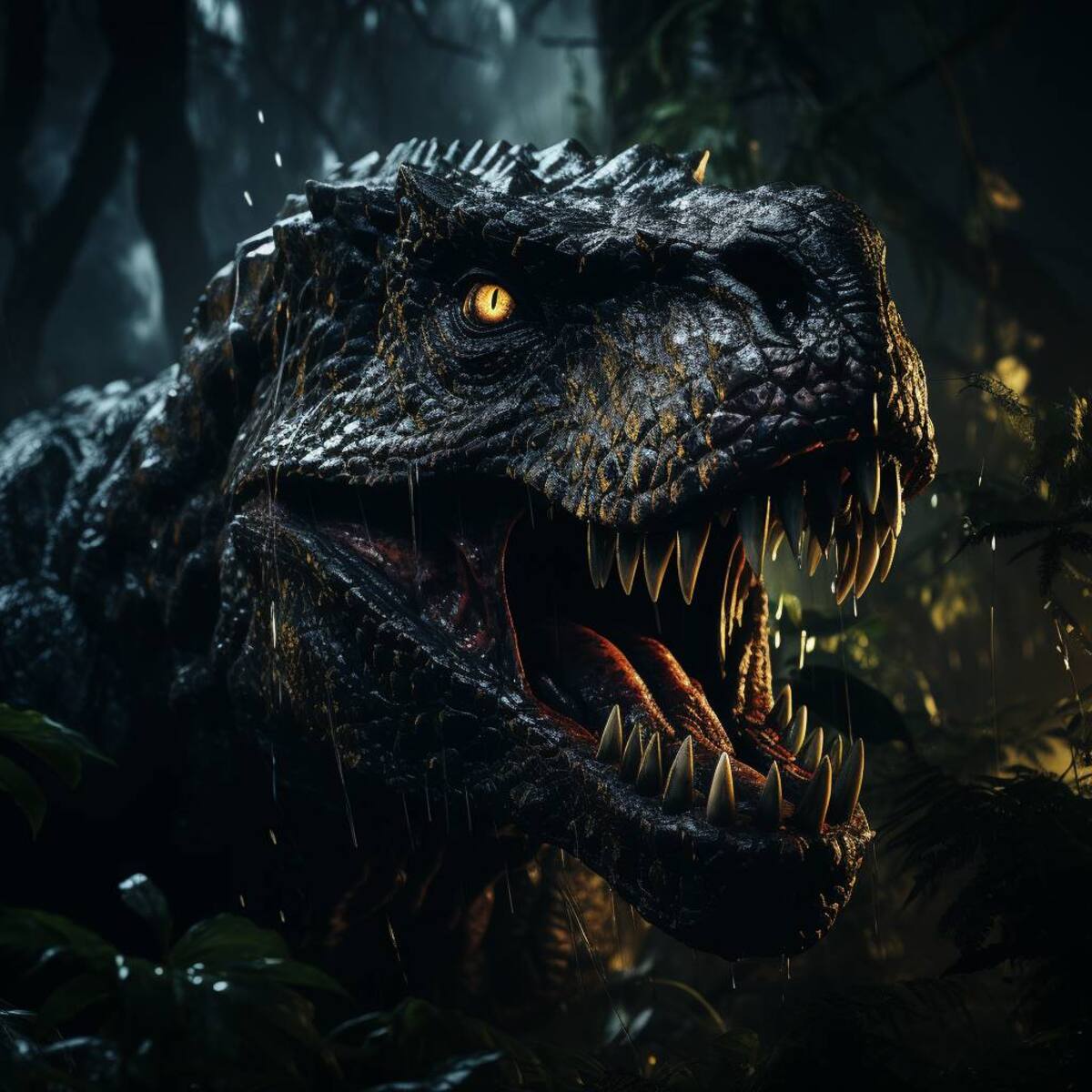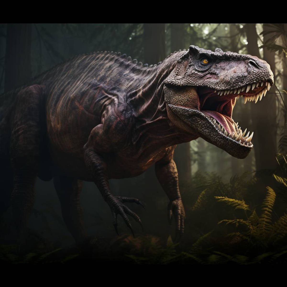 Decidimos usar el bot generativo de Midjourney para crear algunas imágenes donde viéramos al temible T-Rex acechando en su ambiente natural, a partir de los modelos más exactos hasta la fecha de cómo se podría haber visto esta aterradora criatura.