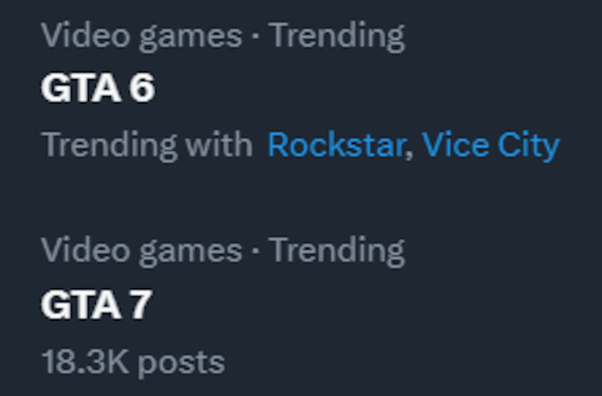 Prueba de ello es que ni bien se habían mostrado las primeras imágenes de la renovada Vice City y el estado de Leonida (mismo que conoceremos en 2025), cuando la frase GTA 7 se volvió tendencia en Twitter (ahora conocida como X).