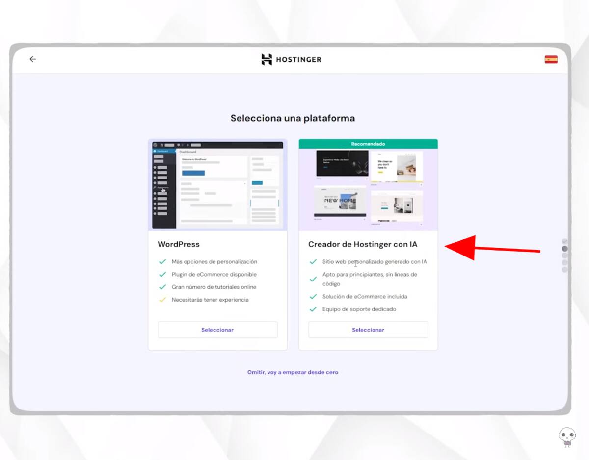 De primeras es que no es gratuito, pues la función que nosotros destacamos se encuentra en el portal Hostinger, una empresa de alojamiento web que no solo provee servicios de hosting, sino que también ha incorporado funciones avanzadas de IA para facilitar la creación de sitios web.