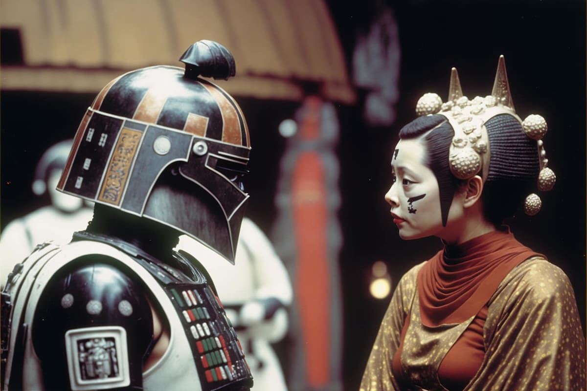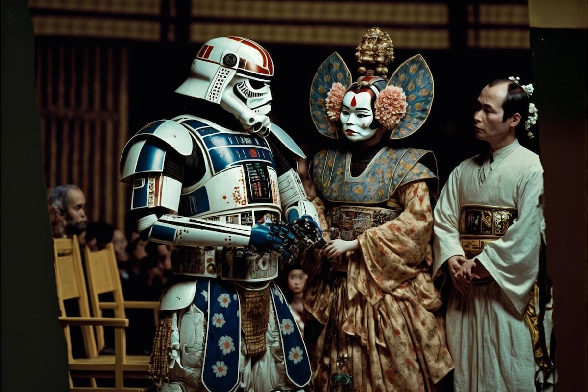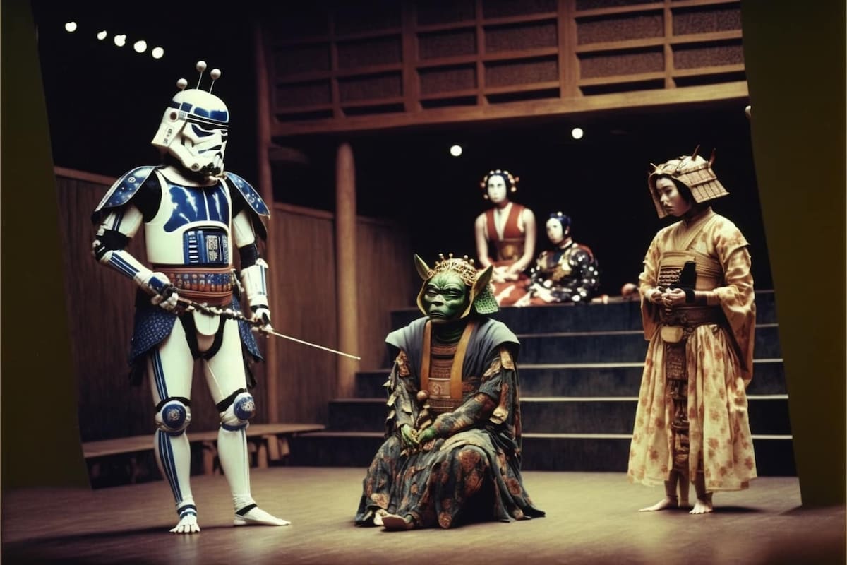 ¿Te imaginas cómo sería Star Wars si se representara en el teatro tradicional japonés Kabuki? Pues no hace falta que lo imagines, porque gracias a la inteligencia artificial, podemos ver una versión sorprendente y original de esta famosa saga galáctica.