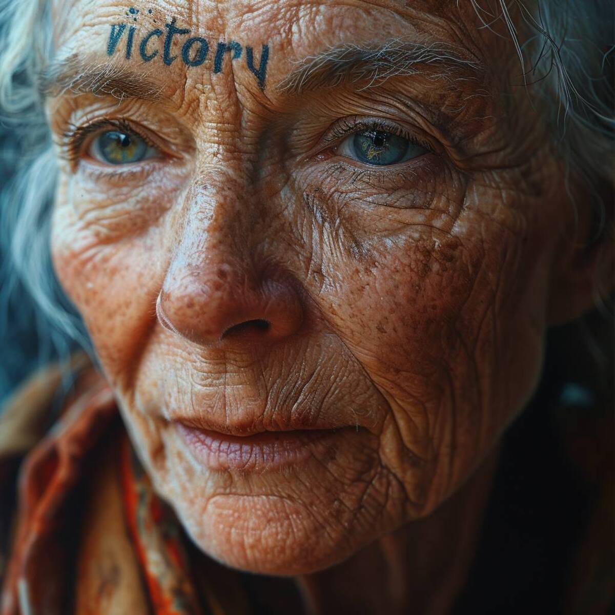 En este ejemplo mostramos a la misma mujer anciana con arrugas detalladas pero con el texto “Victoria”, tal como se observa, la inteligencia artificial interpretó muy bien y escribió la palabra exacta.